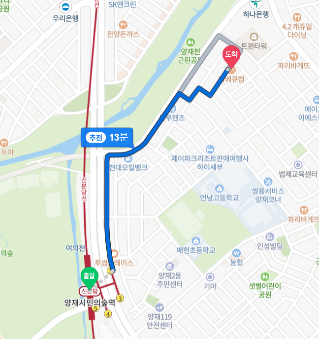 오늘은 양재천에 위치한